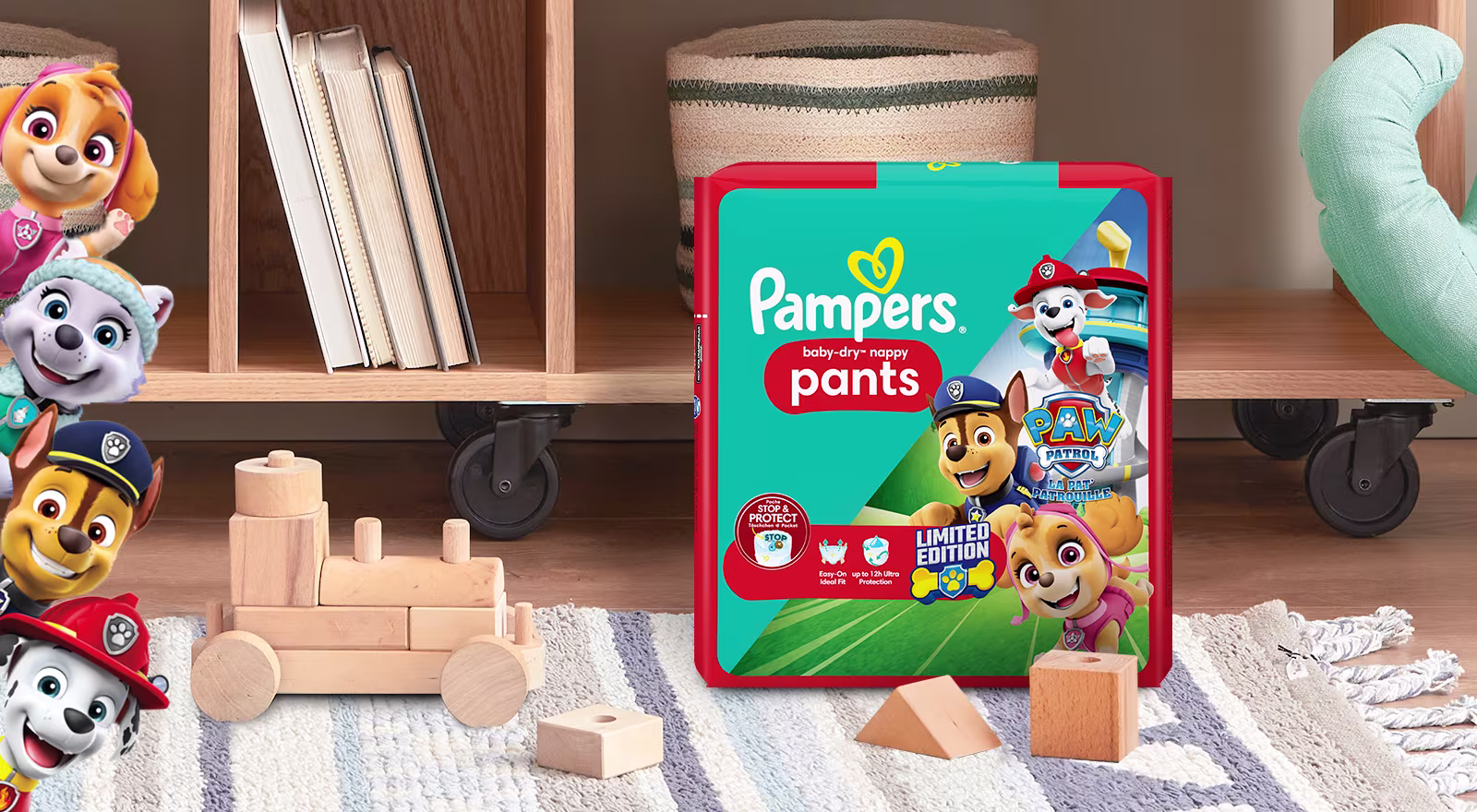 Les personnages de la Pat'Patrouille s'invitent en exclusivité sur la couche-culotte de votre bébé pour le sauver des fuites.