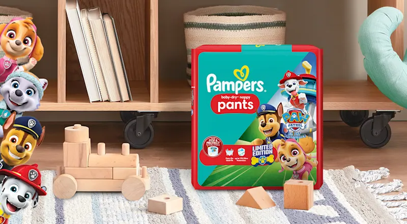 De exclusieve Paw Patrol karakters op het luierbroekje, speciaal om je baby te beschermen tegen lekken.